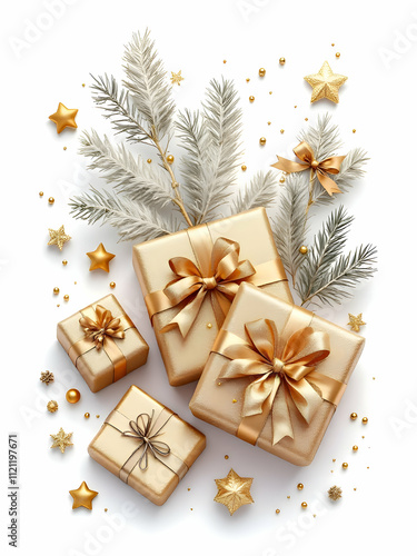 christmas, decoration, gift, holiday, christmas, celebration, box, present, winter, ribbon, gold, tree, ornament, bow, gold, ball, object, celebrate, isolated, red, festive, season, year, colours, shiny