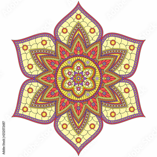 mandala, vector, circle, floral, motif, yellow, round, oriental, vintage, bohemian, ethnic, violet, leaf, red, ornate, graphic, decoration, illustration, design, yoga, decorative, ornament, pattern, decor, drawing, indian, art, meditation, asian, flower, tablecloth, carpet, rug, mat, cover, plate, ornamental, scale, abstraction, abstract, tribal, isolated, white background, card, element, arabic