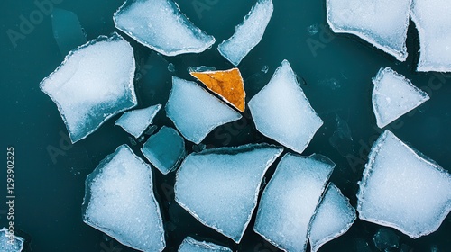 ice, fragment, water, blue, texture, nature, cold, winter, orange, pattern, contrast, geology, natural, environment, glacé, crystal, piece, reflect, beauty, landscape, aerial, surface, seasonal, seasonal change, calm, irregular, calmness, detail, scenic