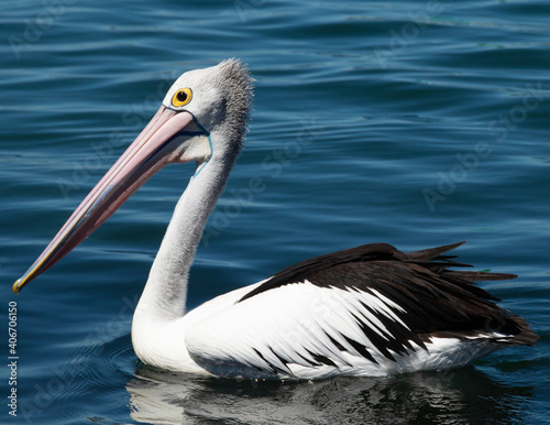 Beautiful pelican swimming on a lake in Foster NSW Australia
