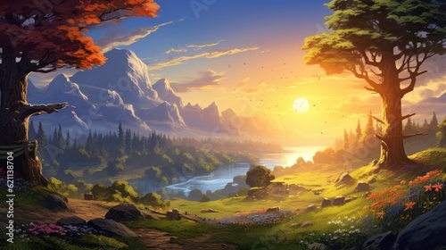 art, illustration, beautiful, background, game, nature, design, landscape, scene, cartoon, wallpaper, concept, sky, scenery, forest, view, drawing, fantasy, summer, grass, blue, draw, tree, green, paint, mountain, realistic, light, cloud, hill, artwork, night, bright, horizon, dark, land, magic, adventure, fantastic, natural, travel, town, white, water, sea, waterfall, digital