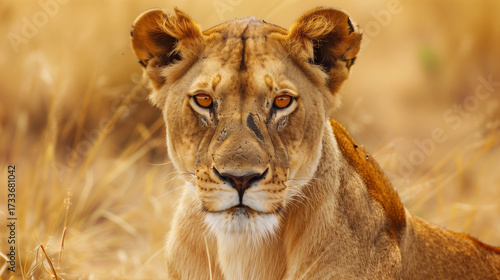 Beautiful wild african lioness portrait, Savanna, game drive, wildlife safari, animals in natural habitat, beauty of nature, Kenya travel, Masai Mara