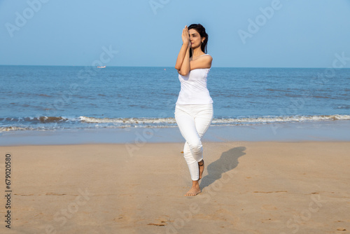 indian, woman, yoga, beach, fitness, asian, lifestyle, sea, girl, leisure, summer, fit, health, active, day, relax, adult, exercise, sand, activity, healthy, health care, concept, white, ocean, position, female, beautiful, young, brunette, pose, practice, activewear, lady, person, people, 1, wellness, body, physical exercise, sport, meditation, asana, pretty, morning, stretching