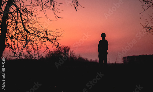 Beautifull sunset in peri-urban ambience with a person on it, Argentina.
