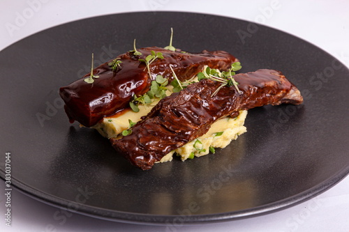 Beef in meat sauce on plate
