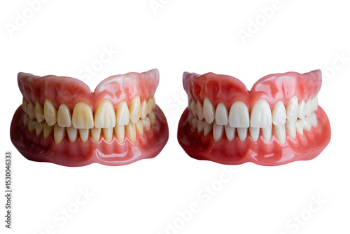 before and after denture comparison, yellowed vs. whitened Teeth isolated on a transparent background