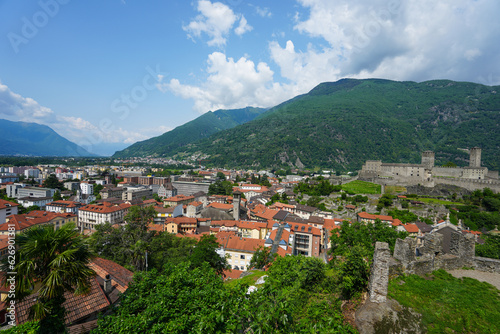 no people, mountain, travel, architecture, famous place, tour tourism, nature, village, ancient, travel destination, old, summer, sky, house, history, mediaeval, tower, hill, building exterior, europa, city, european alps, castle, tessin, historical building, town, fort, ancient civilization, culture, military, tradition, swiss alps, photo, holiday maker, journey, vacation, background, outdoors