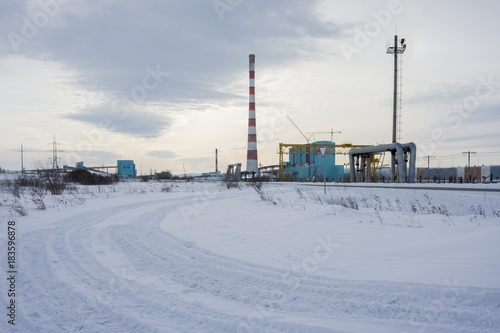electric, building, power plant, energy, chimney, route, piping, landscape, industry, complex, energetic, electricity, station, winter, snow, snowdrift, edge, district, travel, tour tourism, russia