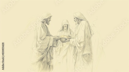 Biblical Illustration: The Bread of Life, Jesus Teaching with Bread, Spiritual Focus, Beige Background, Copyspace