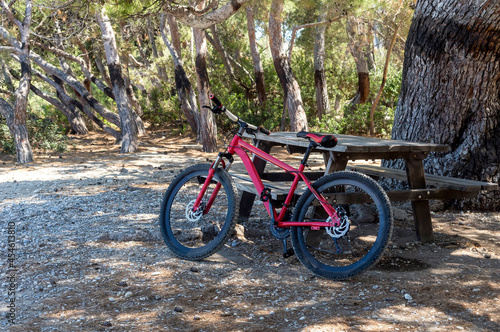 activity, bicycle, bench, closeup, comfortable, cycling, conifer, day, deserted, drive, driving, expectation, greece, holiday, movement, needle, 1, parking, paved, pine tree, pedal, ride, road, rest, rod, rudder, riding, scene, shadow, shine, sun, sport, stone, spring, springtime, stroll, sunny, tour tourism, transport, travel, tree, transportation, forest, wait, wheel, wood, timberland