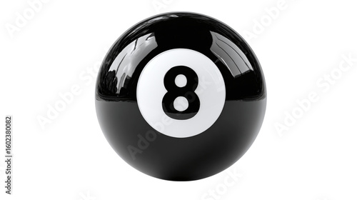 Billiard ball number 8 in glossy black 3D with white number label. isolated on transparent background