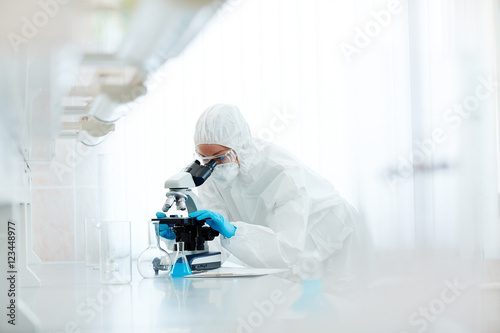 analysing, biochemistry, biotechnology, chemist, chemistry, clinic, experiment, virus, glassware, tube, investigation, profession, laboratory, woman, person, microscope, research, science, scientist, overall, working, danger, toxic, biohazard