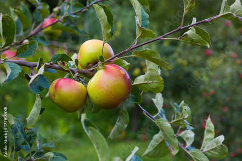 Biological apples hanging on the branch
