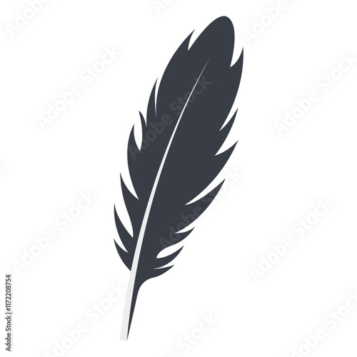 Bird Feather Black Silhouette Isolated on White Background. Vector Illustration