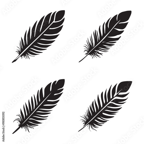 Bird feather silhouette set black color vector illustration