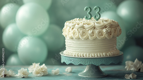 birthday party balloons, colourful balloons background and birthday cake with candles