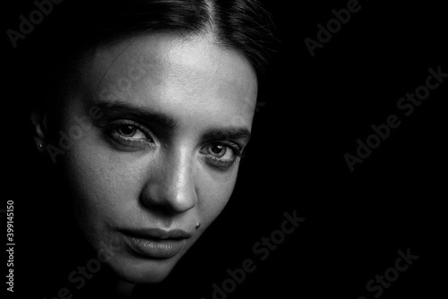 low key, black background, girl, portrait, emotion, lifestyle, beauty, young, person, people, 1, face, posing, art, society, culture, dangerous, danger, cinema, theatre, character, comic, facial expression, monochrome, dark, black, woman, photogenic, model, eye, fashion, sad, guy, boy, serious, hair, closeup, white, expression, head, looking, beautiful, human