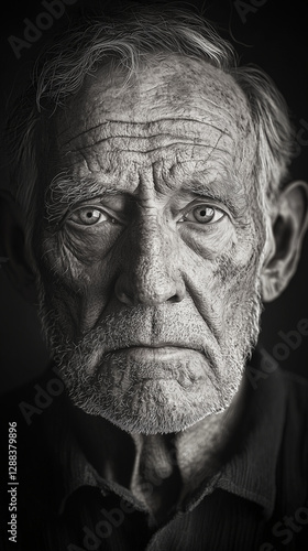 black and white portrait of an old man, close up