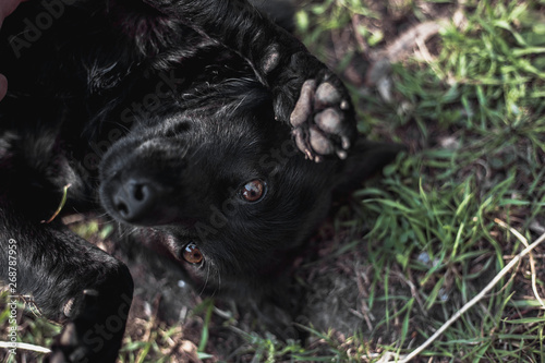 black, funny, dog, lying, grass, his, back, lifting, paw, happy, pet, breed, white, belly, animal, canino, cute, domestic, puppy, purebred, bed, background, doggy, mammal, portrait, young, adorable, blanket, french, leg, leisure, lie, beautiful, down, green, nature, summer, face, gold, husky, isolated, laying, siberian, brown, fur, pedigree, small, carnivore, humor, playful