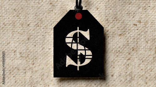 Black price tag with dollar sign, a symbol of shopping, retail, and commerce deals