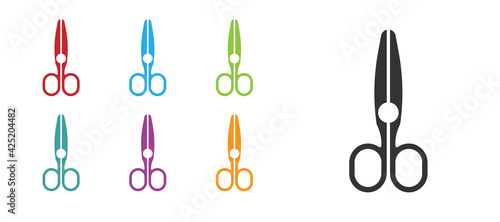 Black Scissors icon isolated on white background. Tailor symbol. Cutting tool sign. Set icons colorful. Vector
