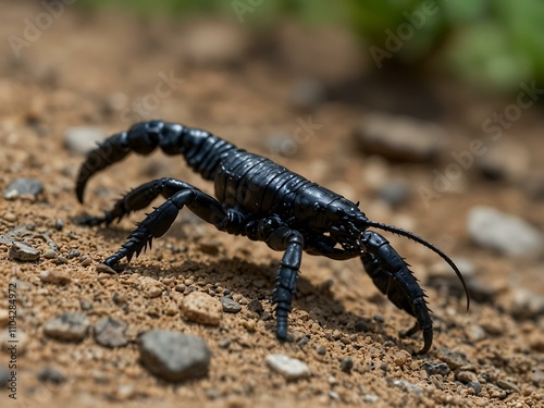 Black scorpion on the ground.