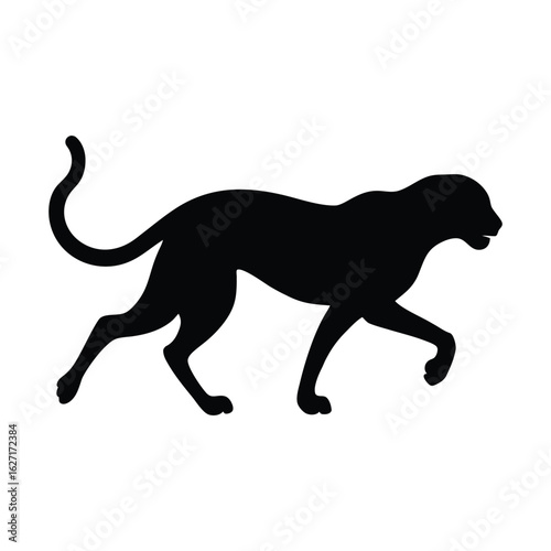 cheetah, silhouette, animal, wildlife, big cat, predator, mammal, wild, nature, africa, savanna, running, walking, stalking, hunting, speed, grace, elegance, powerful, black-and-white, graphic, icon, symbol, isolated, white background, vector, illustration, design element, felino, cat, creature, safari, jungle, movement, athletic, strong, wild animal, domestic cat, pet, zoo, conservation, endangered species, big five