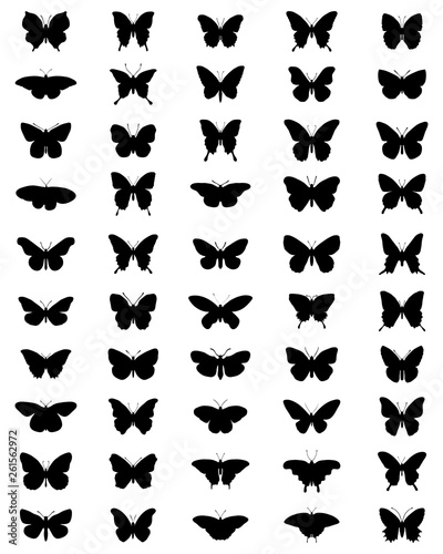 Black silhouettes of butterflies on a white background