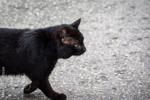 black cat, cat, city, hunter, mammal, pet, spring, springtime, springtime, street, tree, walking, walk