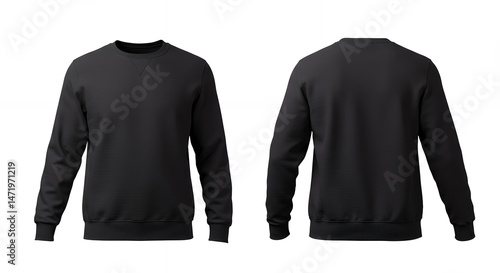 Black Sweatshirt Mockup: Front & Back View - Long Sleeve Crewneck Pullover for Design Template & Apparel Presentation