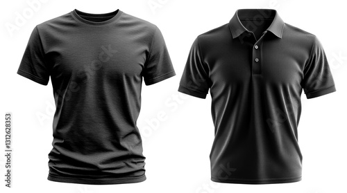 Black t shirt and polo shirt mockup, showcasing casual wear styles