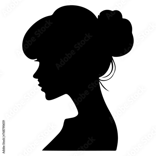 Black vector beautiful woman profile silhouette - fashion or beauty illustration