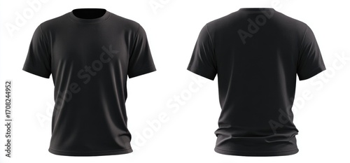 t-shirt, black, blank, short sleeve, apparel, clothing, design, template, fashion, shirt, unisex, casual attire, product, illustration, graphic, front, back, view, model, digital, studio, isolated, printing, customizable, vector, commercial, promotion, display, retail, e-business, digital rendering