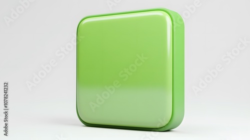 Blank Mobile application icon, button - green square with round corners. 3d rendering, white background
