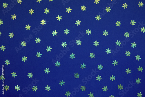 Blue abstract christmas background with holographic glitter snowflake