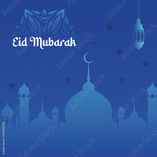Blue Background Eid mubarak greeting card background design. Islamic arabic background.