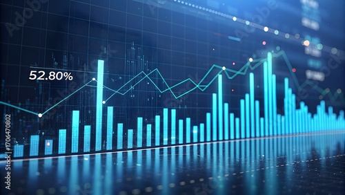 stock exchange, financial, graph, chart, datum, analysis, statistic, business, economy, growth, trend, rising, falling, percentage, digital, technology, blue, glowing, abstract, futuristic, investment, trading, finance, market, success