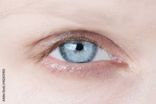 Blue human eye. Beauty macro closeup woman's eye blinking
