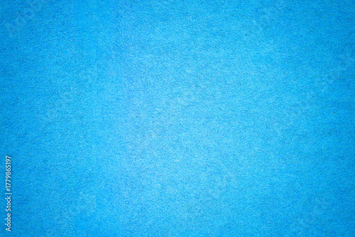 Blue paper background texture with gradient. Vintage cerulean cardboard backdrop with dark vignette border.