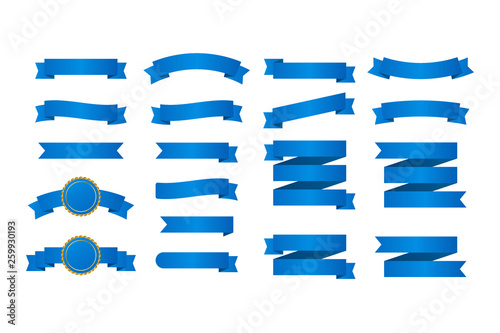 Blue ribbons banners. Set of ribbons. Vector illustration.