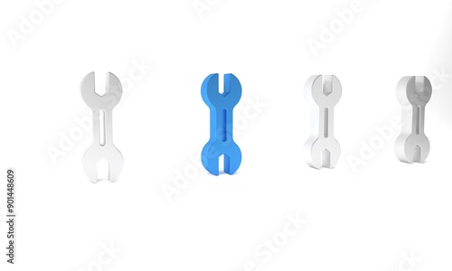 Blue Wrench spanner icon isolated on white background. Minimalism concept. 3D render illustration