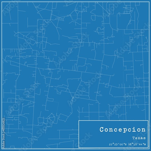 Blueprint US city map of Concepcion, Texas.