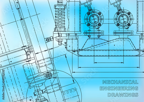 Blueprint. Vector engineering drawings. Mechanical instrument making. Technical abstract backgrounds. Technical illustration. Blue
