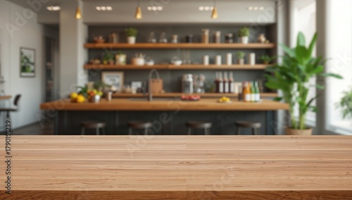 kitchen, table, background, wood, product, counter, food, wooden, desk, window, shelf, tabletop, empty, surface, indoor, display, retro, blur, top, room, white, cafes, template, bright, rustic, modern, design, place, green, texture, abstract, home, board, vintage, light, space, wall, interior, eatery, colours, furniture, decoration, plank, blank, copy, blurry, montage, brown