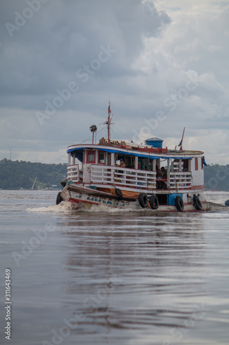 boat, ship, water, river, big, large, transport, fuel, station, ferry, bus, rio, amazon, ride, drive, floating, store, living, local, life, jungle, region, area, outside, nature, cloud, cloudy, sky, summer, warm, tropical, village, city, pier, breakwater, house, building, tour, trip, travel, tour tourism, holiday, typical, transfer, wood, landscape