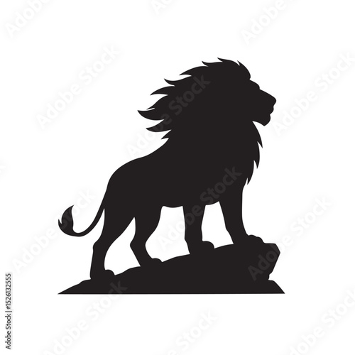 Bold Lion Silhouette Standing on Rock with Flowing Mane – Dramatic Wildlife Vector
