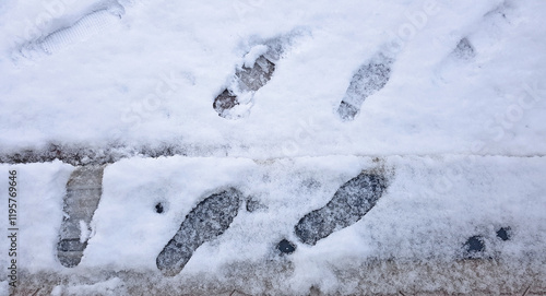 boot, print, snow, footprint, foot, trace, step, imprint, track, footstep, footpath, snowy, print, winter, frost, impression, shoe, white, human, december, freshly, fallen, cold, season, closeup, weather, path