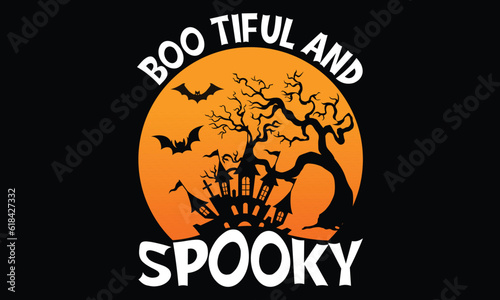 Boo-tiful and Spooky , Halloween t-shirt design template, Beautiful and eye catching vector, Good for Clothes, Greeting Card, Poster, and Mug Design