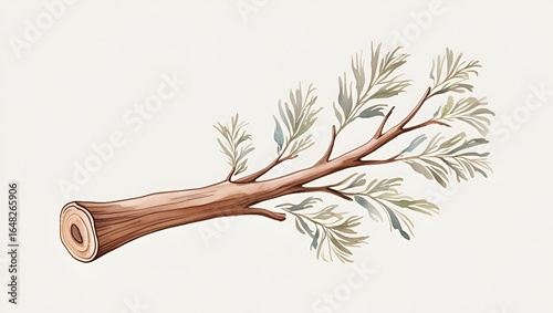 Botanical graphic of a dry tree branch, hand-drawn in elegant watercolor style, featuring detailed bark texture and unique shape, isolated for design decoration