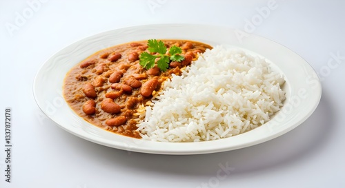 bowl of rice, Plate food serving rice beans is white fluffy Rajma Chawal Indian Dish